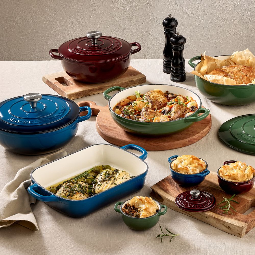 The Cast Iron Collection seamlessly combines timeless sophistication with reliable craftsmanship, making it an essential addition to any kitchen. Each piece is thoughtfully designed for versatility, transitioning effortlessly from stovetop to oven to table, ensuring convenience for both home cooks and culinary enthusiasts alike.