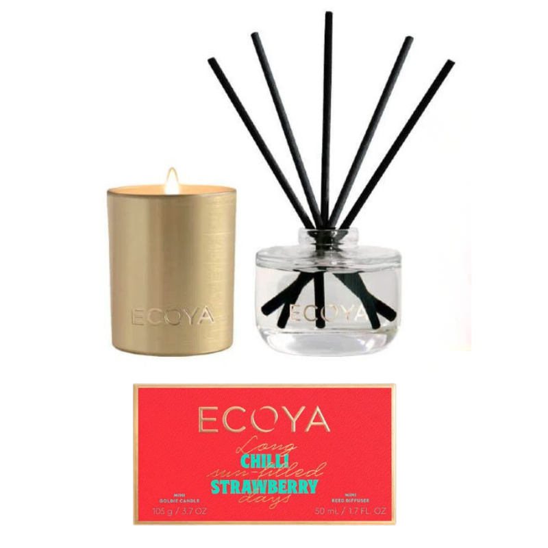 Ecoya Holiday Chilli & Strawberry Mini Gift Set Diffuser & Goldie Candle
