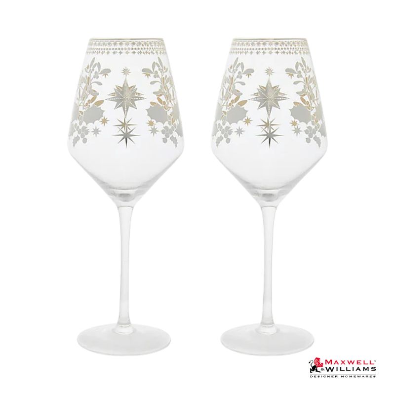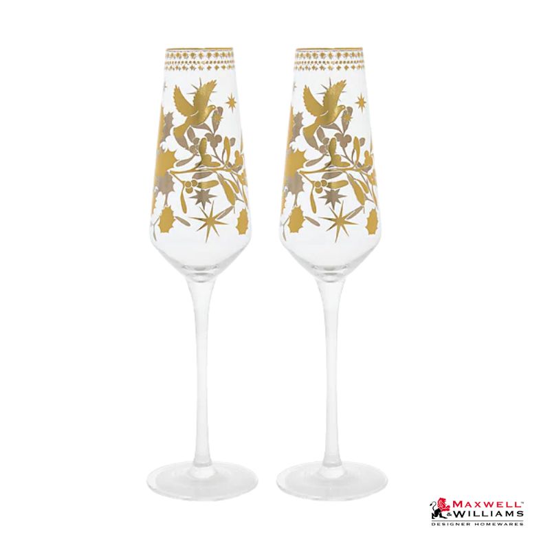 White Christmas Prosecco Glass 240ml Set 2 Gold