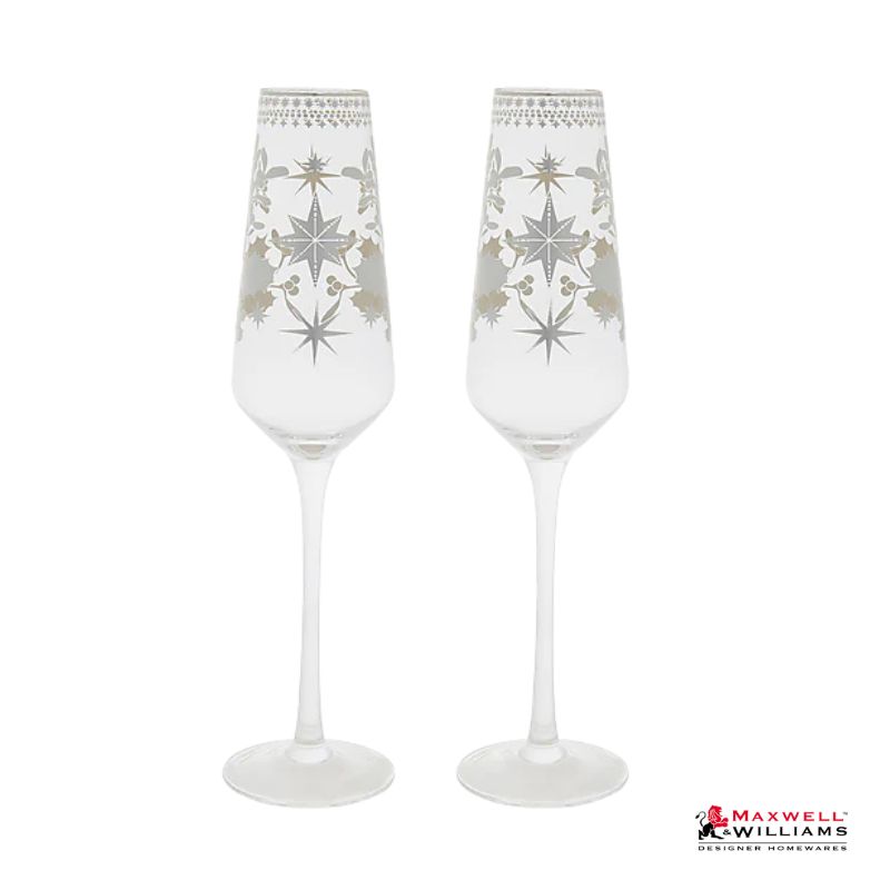 White Christmas Prosecco Glass 240ml Set 2 Silver