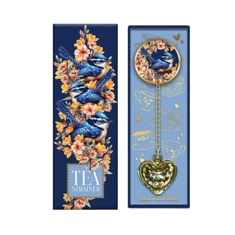 Tea Time Range Strainer Gold Detailing Blue Wren