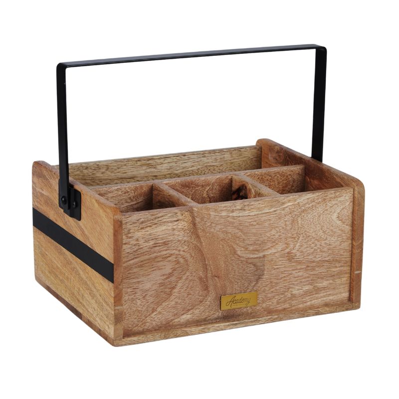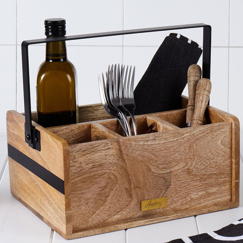 Shippping 1 x Academy Mango Wood Cutlery Condiment Caddy