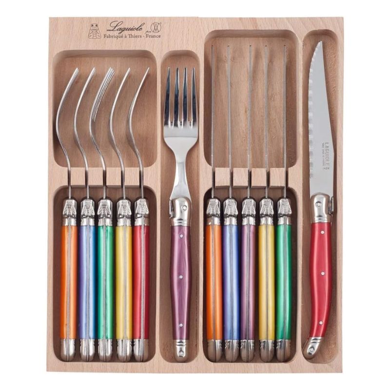 With the classical appeal of faux ivory grips and the signature Laguiole bee, this premium quality 12pce Laguiole by Andre Verdier Debutant Cutlery Set speaks of style and quality, making an elegant statement on your table.