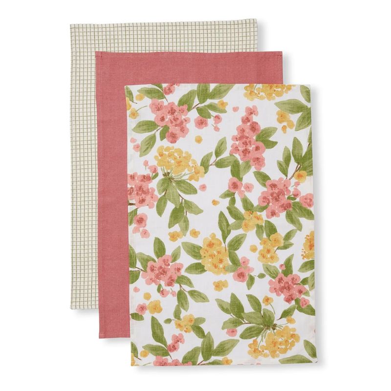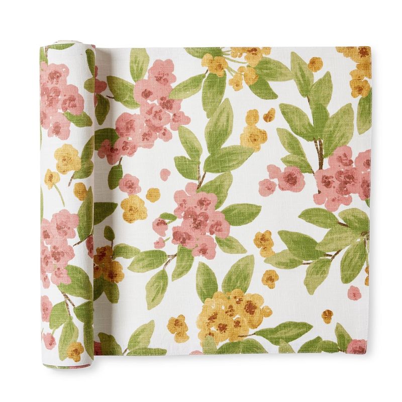 The Annie napery range features a colourful floral print screen-printed on an off-white cotton slub base.