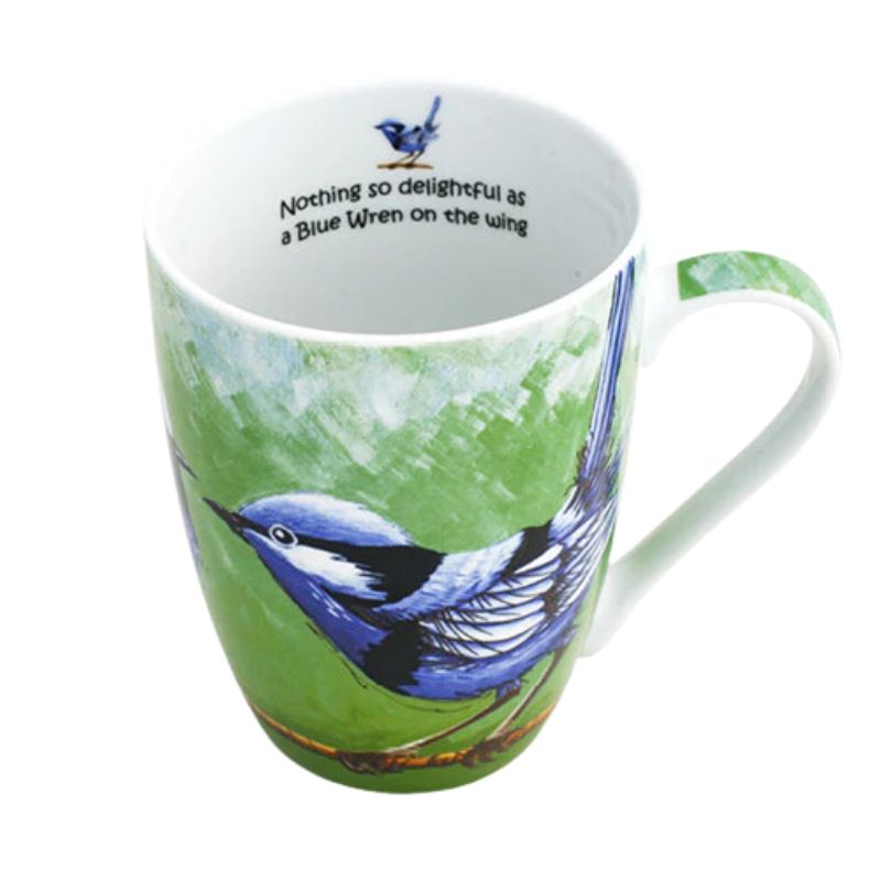 Shipping 1 x Lisa Pollock Bamboo Tea Time Tray with Spoon Cheeky Blue Wren Bird