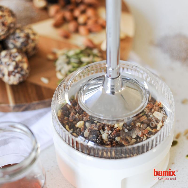 The Bamix® Wet & Dry Processor is a fantastic Bamix® attachment that will enable you to chop an array of items such as cured meat, dried vegetables and mushrooms, hard cheeses, nuts and seeds. Even turn peanuts into peanut butter!