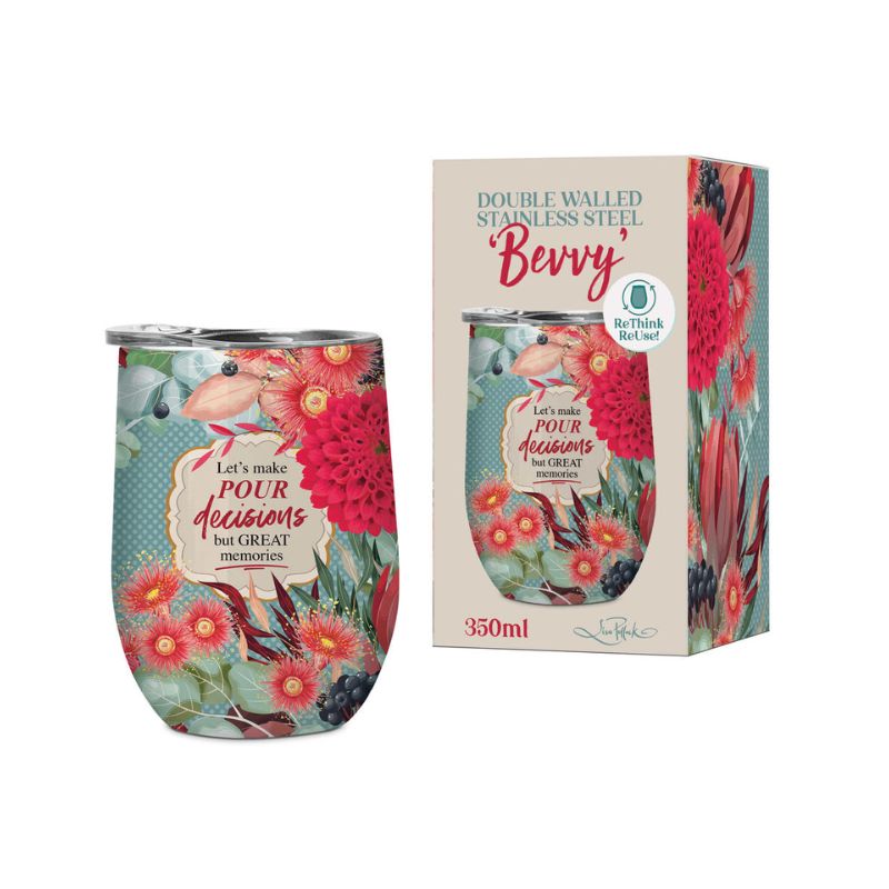 Shipping 1 x Bevvy Double Wall Tumbler Mug 350ml Gumnut Blossom