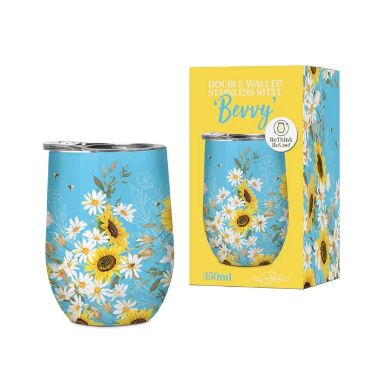 Shipping 1 x Bevvy Double Wall Tumbler Mug 350ml Wildflower Rainbow