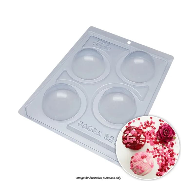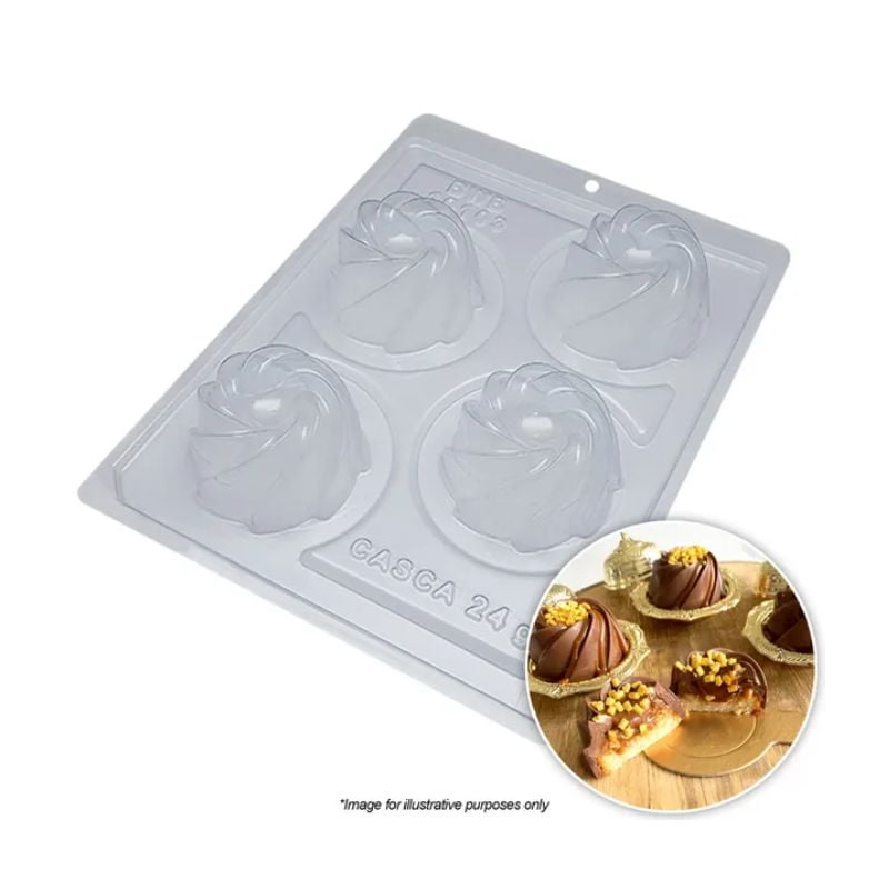 Simply fill the 1st part of the mould with chocolate up to the marked line. Place the 2nd part silicone mould gently over the chocolate. Use the 3rd mold part to impress the chocolate and fill to the top. Flip the mould open side down and place in freezer for 5 minutes. Gently separate all parts from chocolate and repeat the process.