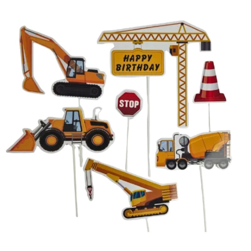 Cake Topper Cut Out Set Construction Trucks 9pce