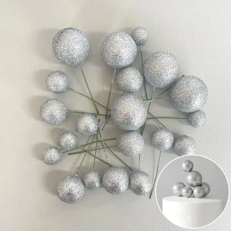 Wish Cake Topper Deco Foam Ball 20pce Silver