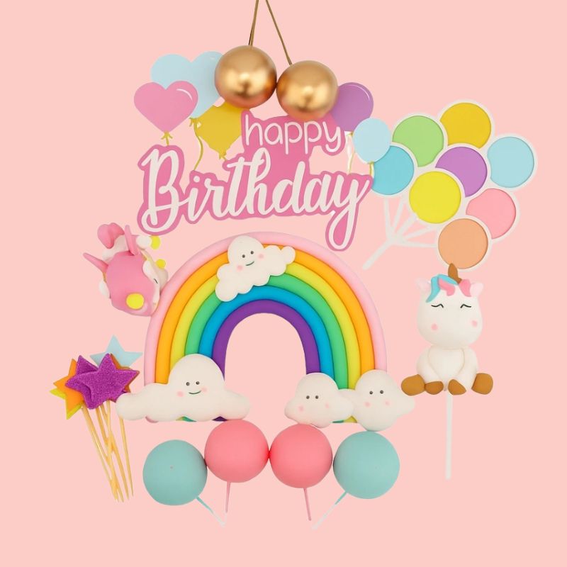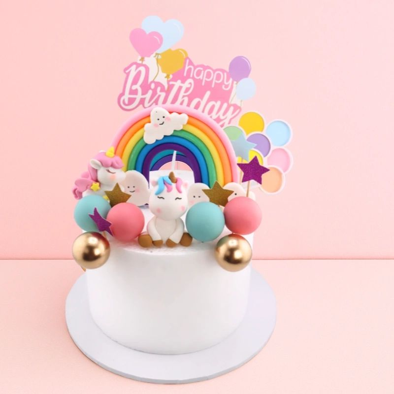 Shipping 1 x Cake Topper Deco Set Unicorn Rainbow