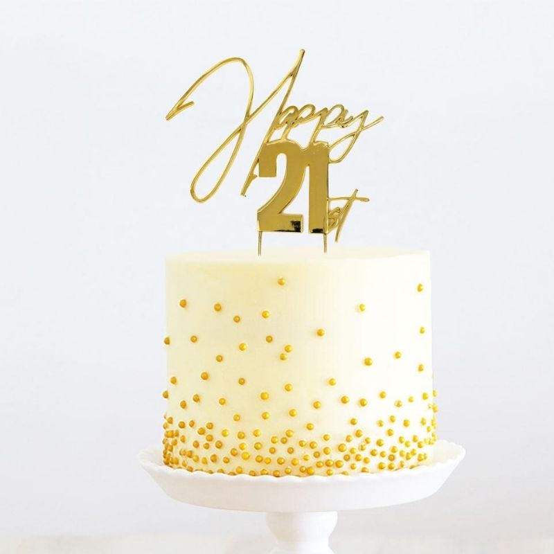 Shipping 1 x Cake & Candle Topper Metal Happy Birthday Gold