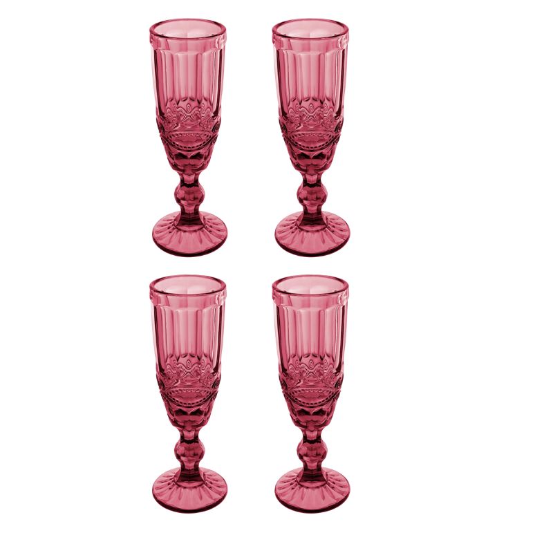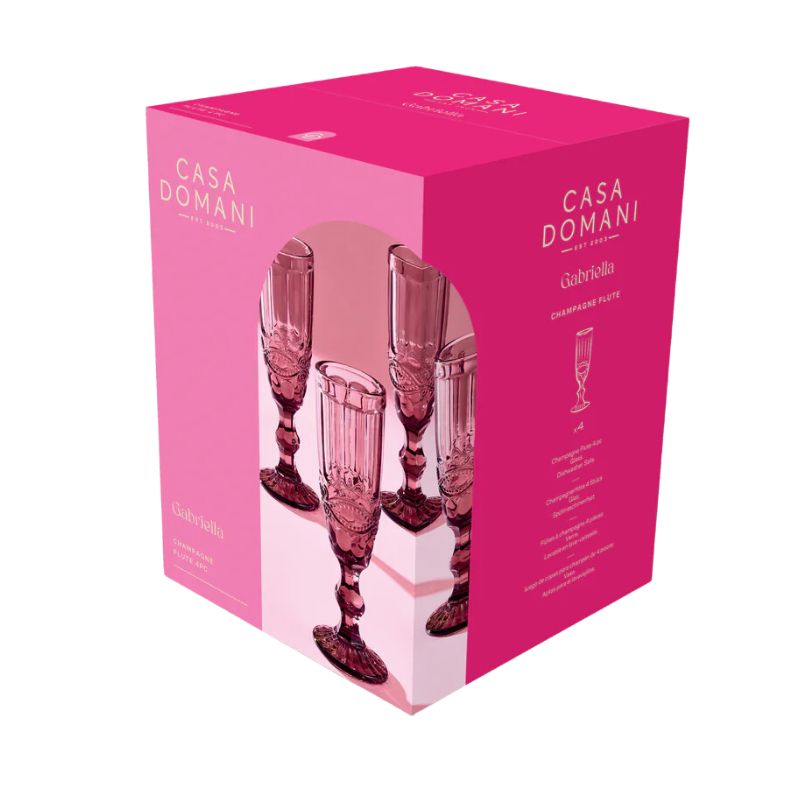 Casa Domani Glassware Gabriella Pink Champagne Flute Set 4