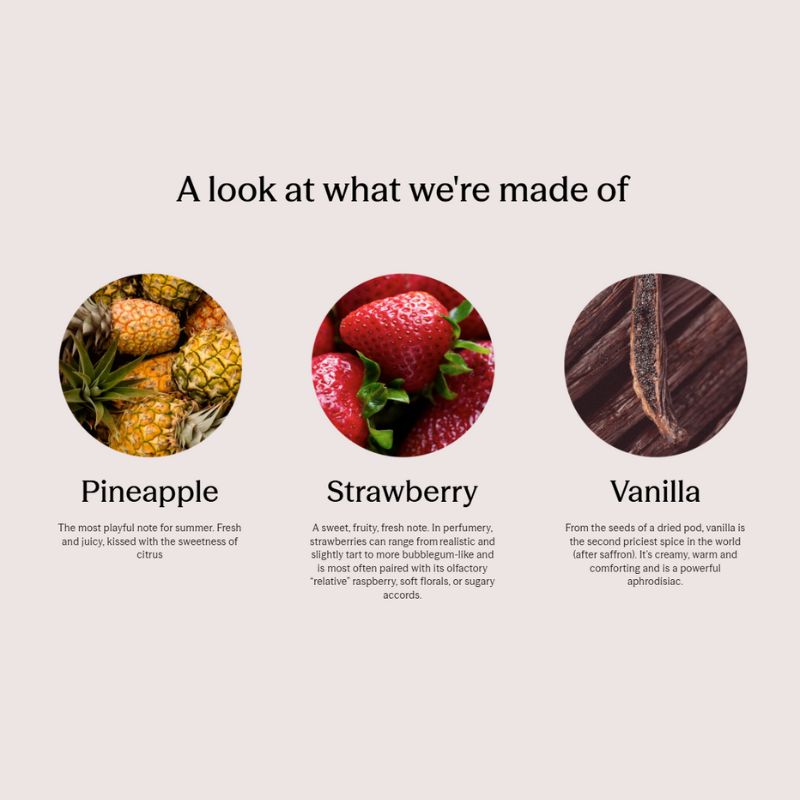 Shaking up your holiday season, this vibrant fragrance bursts with juicy pineapple, ripe strawberry and a twist of zesty citrus, infused with vanilla and a hint of chilli. Fresh, fruity and with a touch of heat, Chilli Strawberry captures the essence of long, festive, sun-filled days.