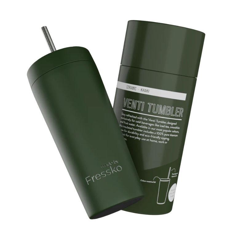 Shipping 1 x Fressko Venti Smoothie Ceramic Tumbler 600ml Sage