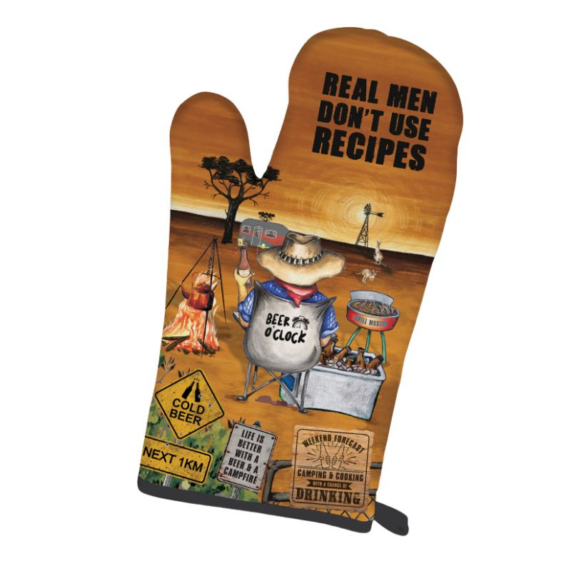 Happy Hour BBQ Oven Mitt Pot Holder Set Campfire Campground