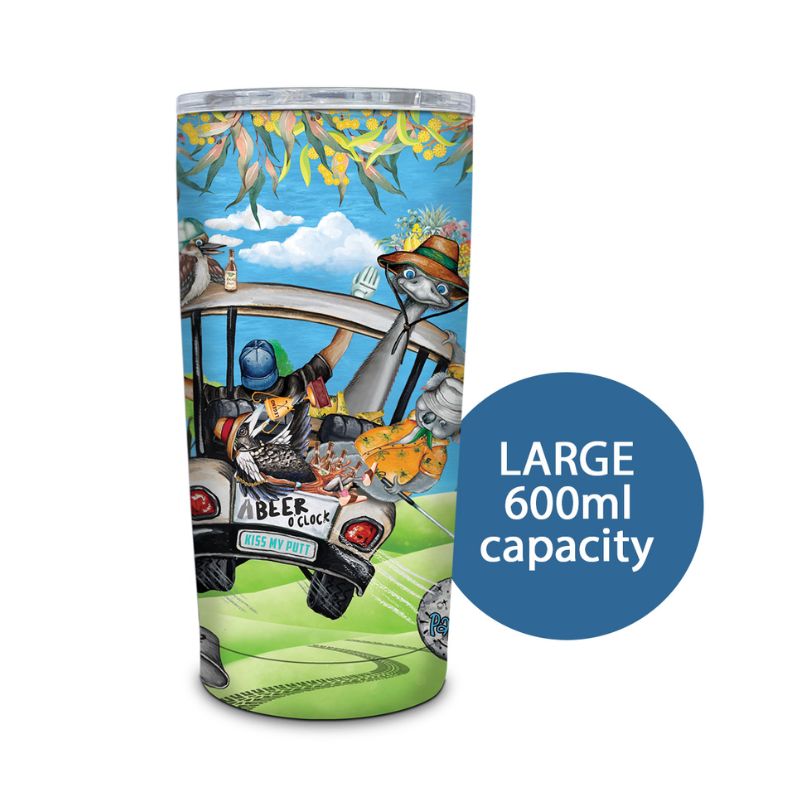 Shipping 1 x Happy Hour Roadie Double Wall Travel Mug 600ml Golf 19th Hole