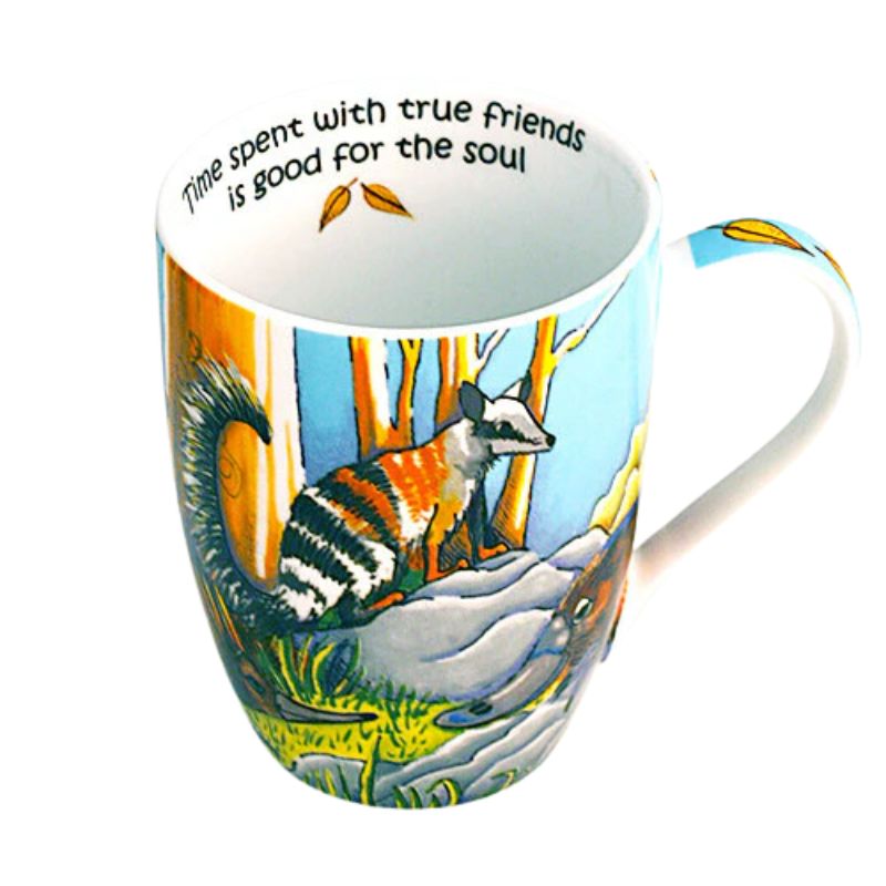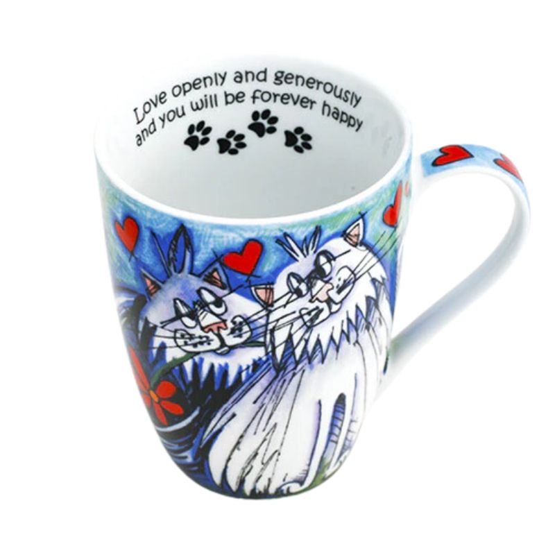 All of the mugs are “water-slide” decals (of Libby’s work) burnt onto the clear glazed surface of either Porcelain or Fine Bone China both of which are extremely strong.