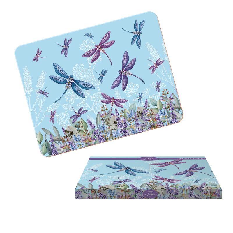 Lisa Pollock Coaster Set 6 Lavender Dragonfly