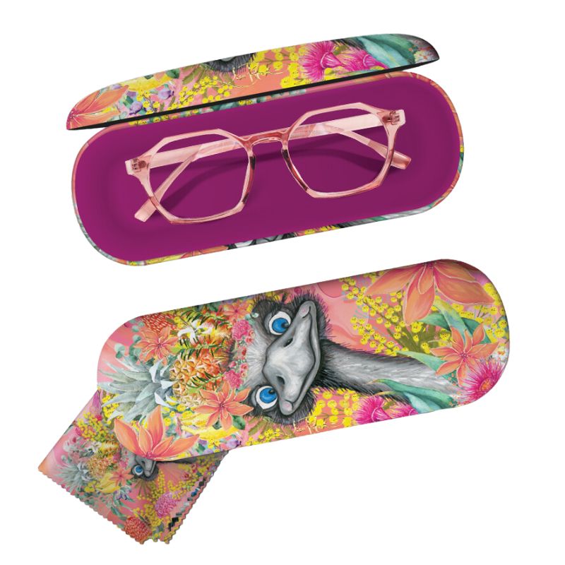 Shipping 1 x Lisa Pollock Glasses Case with Cleaning Cloth Pool Party Floral