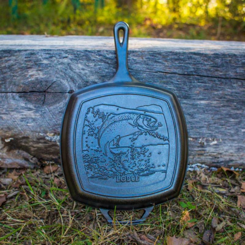 Lodge Cast Iron Cookware Grill Square Wildlife Series Fish 10.5 inch 27cm