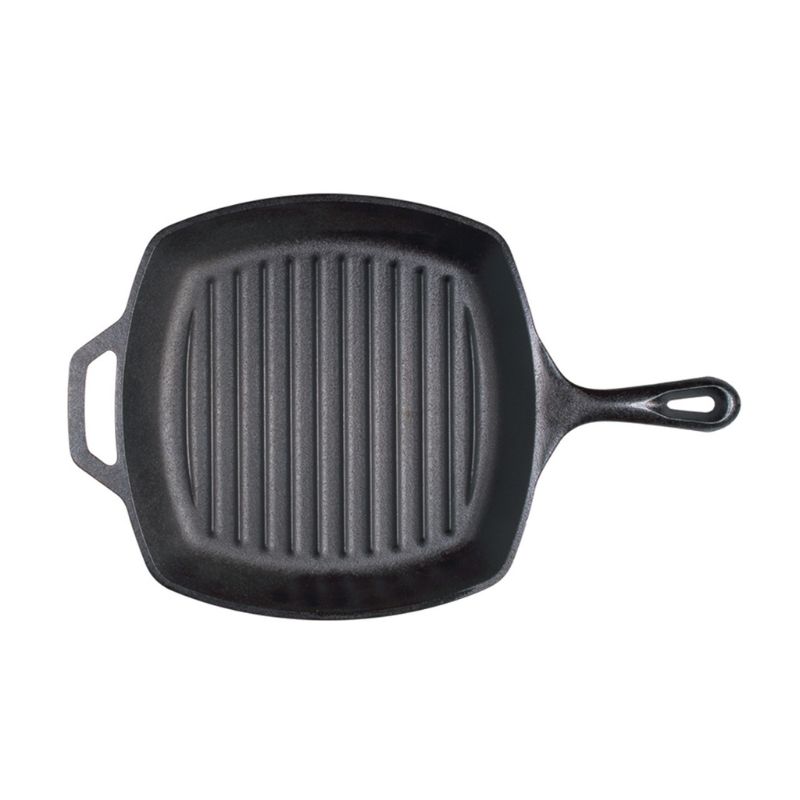 This square grill pan is seasoned and ready to use and perfect for cooking bacon, steaks and more.