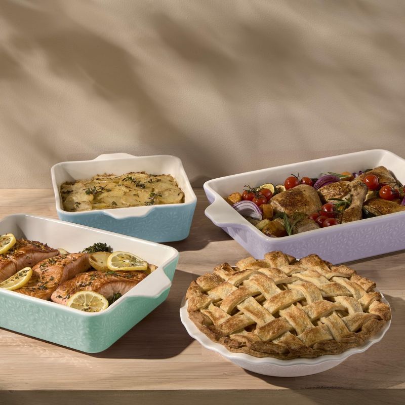 Elevate your kitchen with the Blooms Collection, an oven-to-table bakeware range available in green, blue, lilac, and white. Featuring an embossed floral design, it blends charm and sophistication, making every meal effortlessly elegant. Perfect for stylish family dinners and entertaining, it combines beauty and functionality in one.