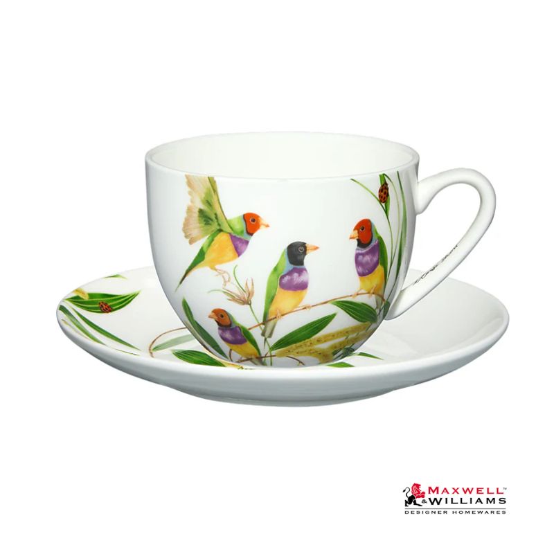 Shipping 1 x Maxwell Williams Eloise Short Lyric Cup & Saucer 240ml Gouldian Finch
