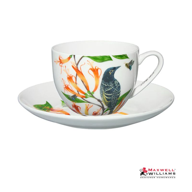 Shipping 1 x Maxwell Williams Eloise Short Lyric Cup & Saucer 240ml Regent Honeyeater