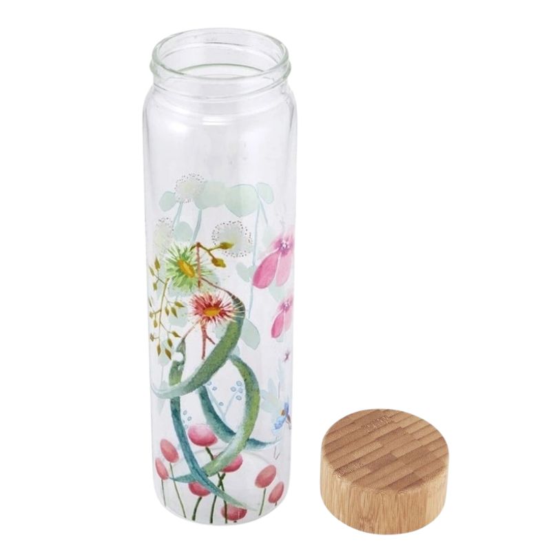 Stay hydrated in style with the Eucalyptus Bloom glass water bottle. Designed in collaboration with the Royal Botanic Gardens Victoria, this exquisite water bottle features a hand-painted design inspired by the garden’s native flowers and foliage. Made from quality glass with a bamboo lid, this gorgeous bottle is strong and durable so you can take it with you on the go. Full of beautiful detail, it brings a touch of elegance with a uniquely Australian feel.