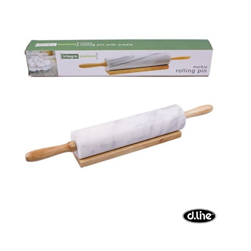 Marble Rolling Pin with Wood Base. Made from durable marble that provides a non-stick surface, the rolling pin is a must-have Kitchenware utensil.