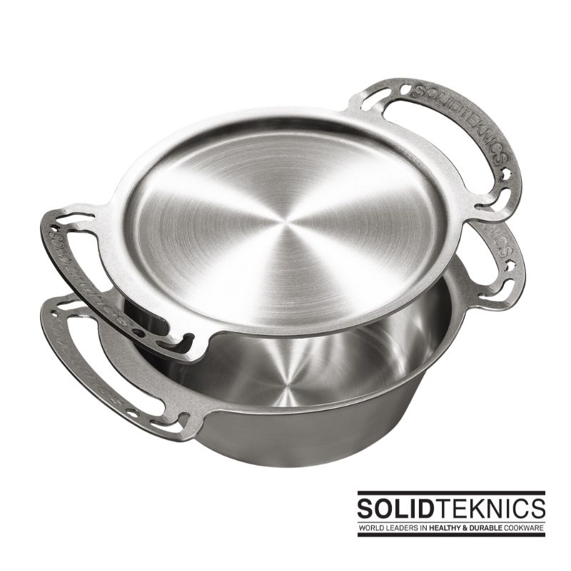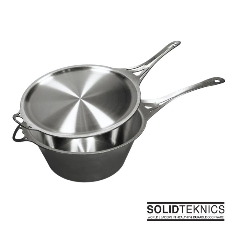 The indestructible, highly conductive and seamless 31cm Sauteuse (deeper than a regular skillet) is made from the finest ferritic stainless steel, has no rivets, joins or screws, and is suitable for all heat sources.