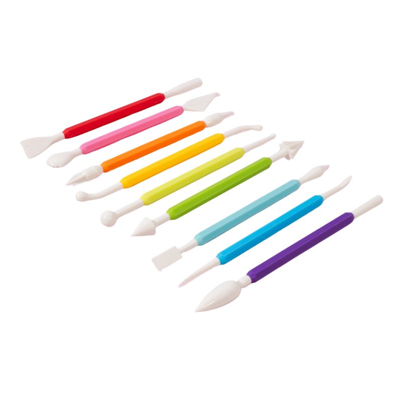 The SPRINKS double-sided 9-piece modeling tool set offers a versatile selection of tools for sugar craft enthusiasts and professionals alike. With its variety of shapes, sizes, and functionalities, this tool set enables users to bring their creative visions to life with precision, detail, and finesse. Made with BPA free quality plastic, the tips are removable for easy cleaning and storage.
