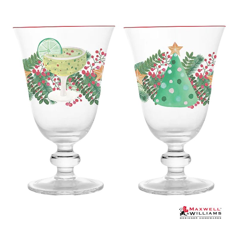Maxwell Williams Tis The Season Stemless Glass 500ml Set 2 Assorted Gift Boxed