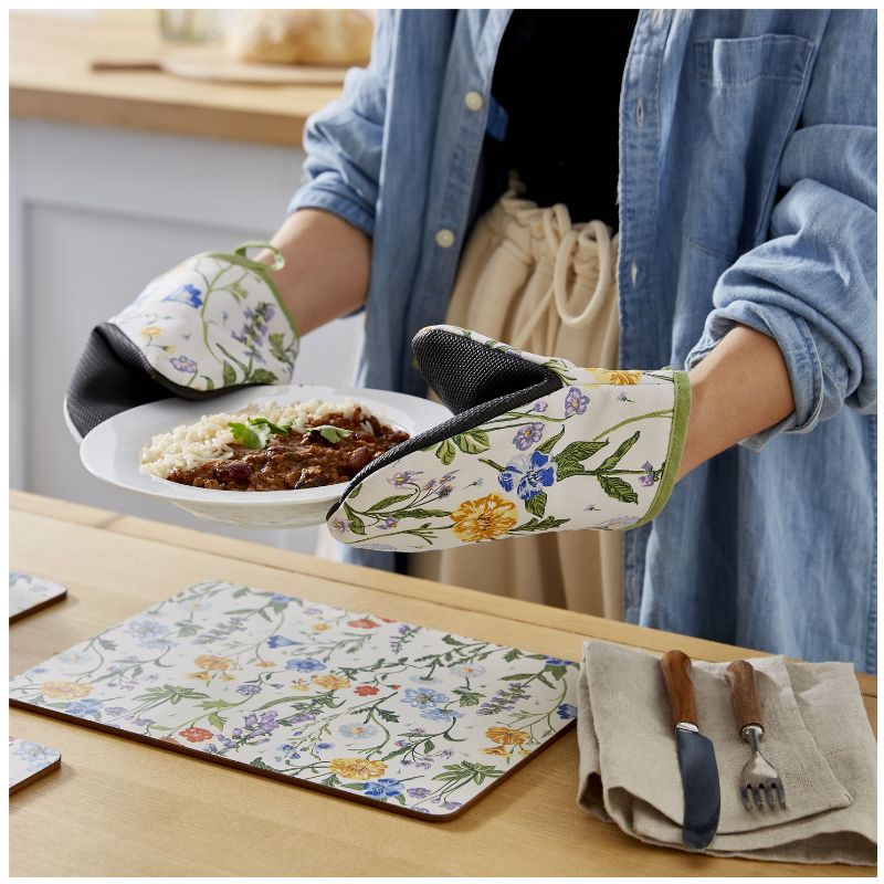 The Cottage Garden Set of 2 Microwave Mitts adds elements of romance and beauty when entertaining friends and family for large dinners! It features a beautiful pattern of wildflowers in different hues fluttering in the wind.
