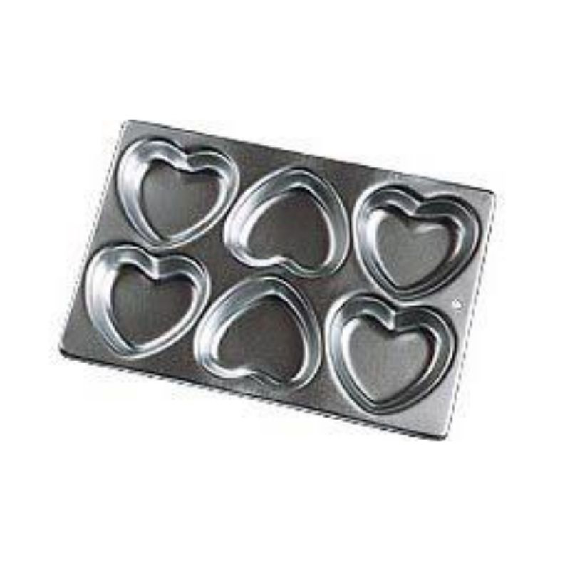 ix cavities, each heart is 3 5/8 x 3 1/2 x 1 in. deep. Aluminum.